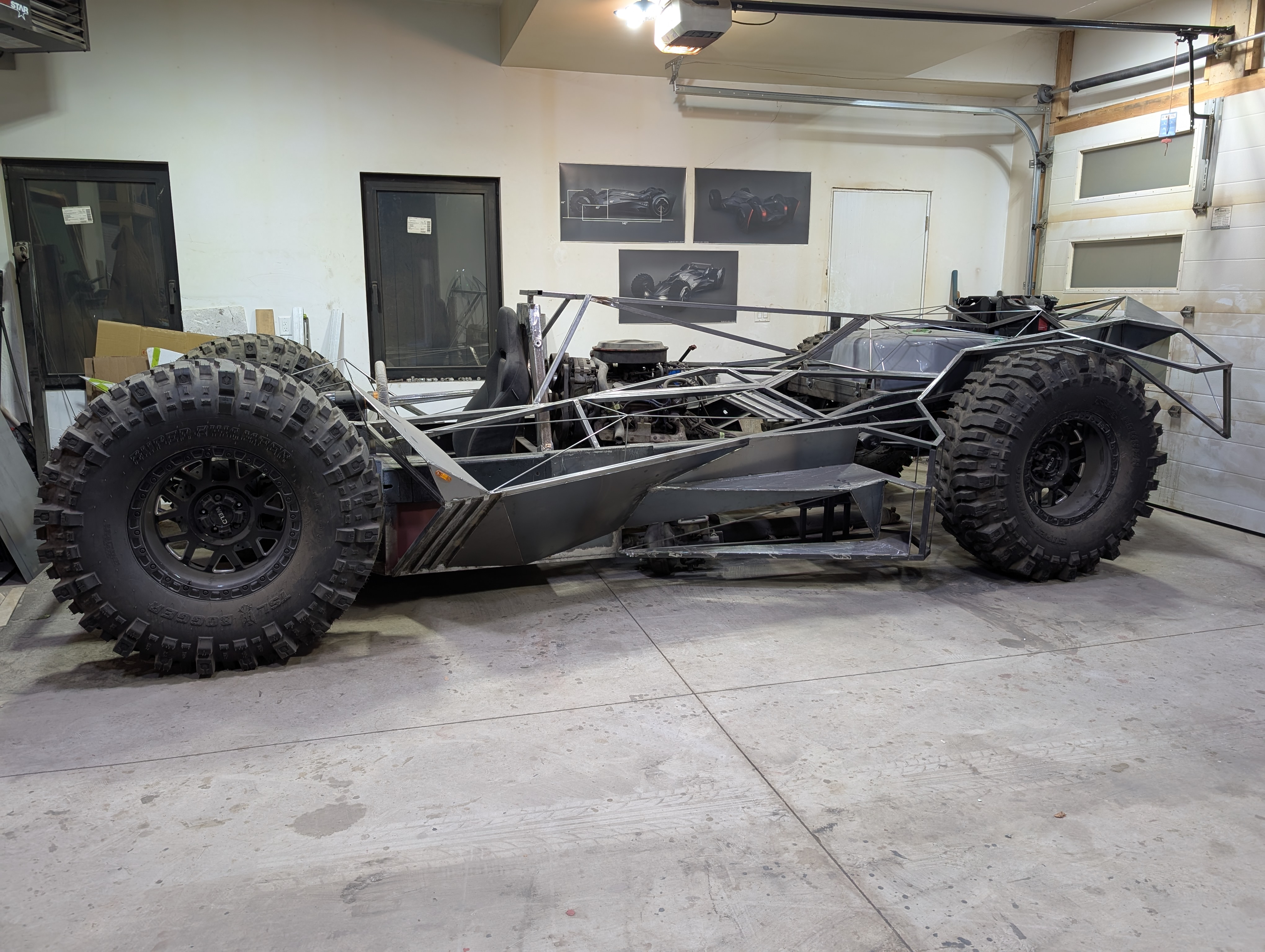 The TMBLER is a vision of a Batmobile that has been inspired by online concept art and built on a Chevy C1500 chassis with a relocated V8 engine creating a mid-engine monster.
