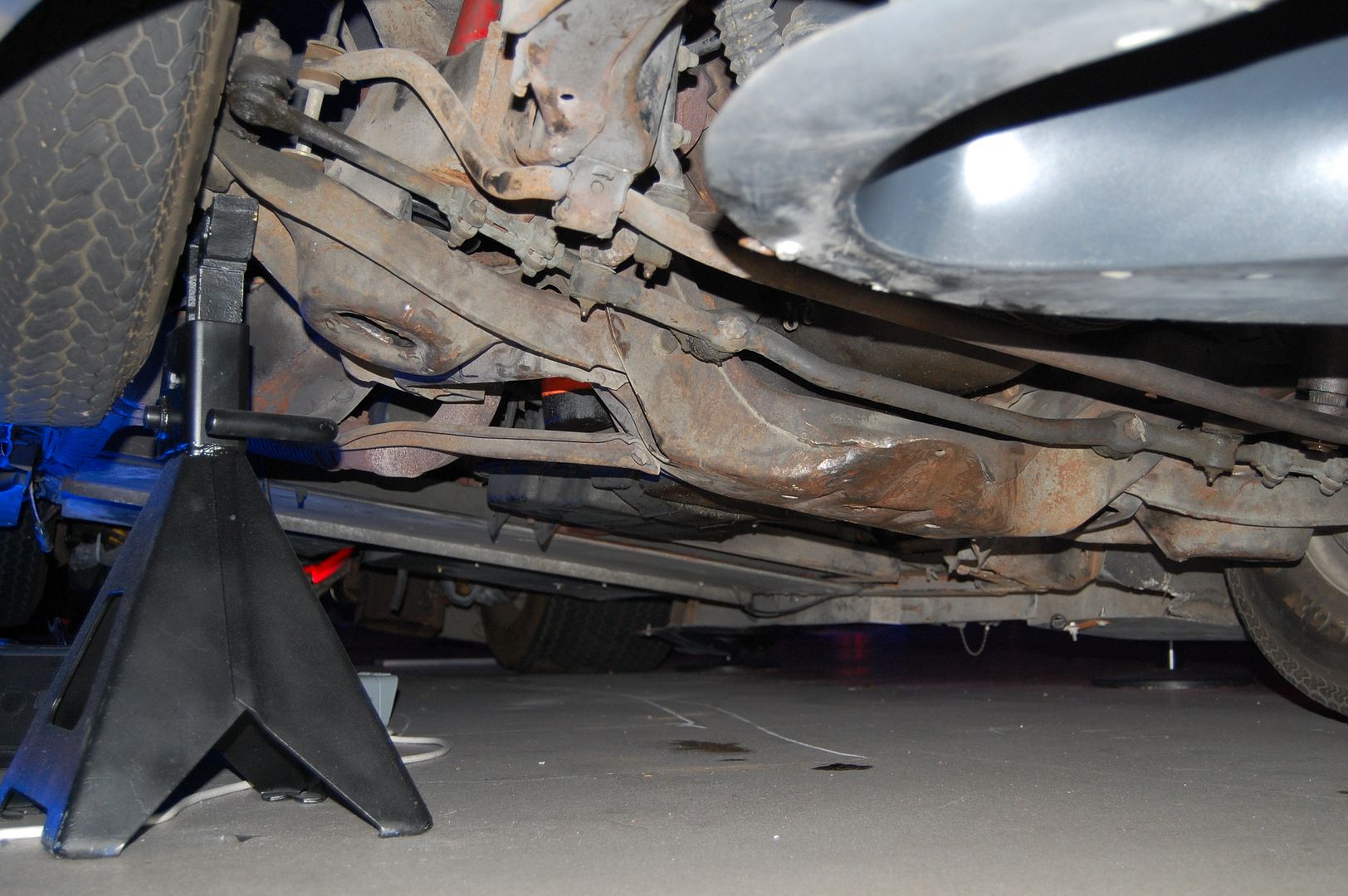 Since the car was jacked up I figured I would take a picture of the underside of the car in case it revealed some interesting details. But it was pretty much as expected, although I did notice that they had a lip around the underside of the nose for extra strength.