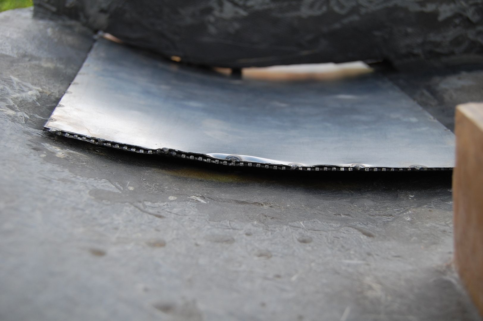 I then used the same process as the speaker boxes to create a solid backing for the mesh. This time I picked-up some thinner 22 gauge steel for the backing material so that it was easier to bend into shape.