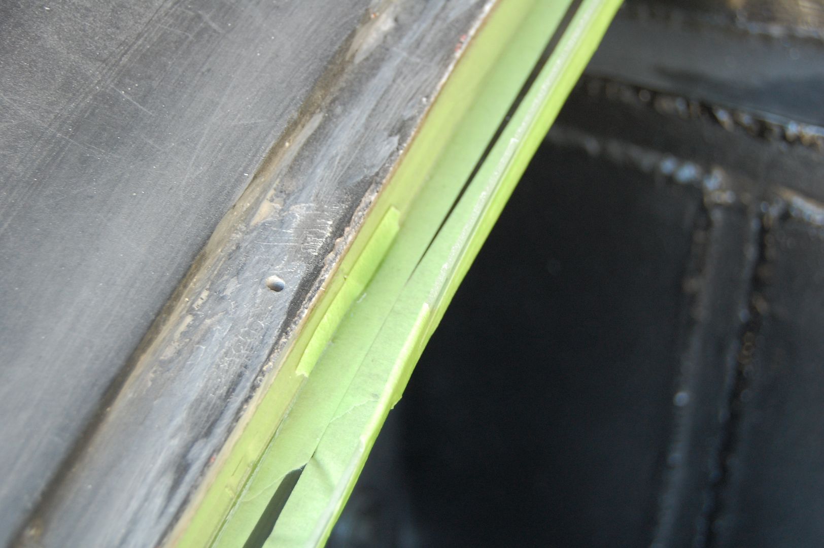 I decided to create the same kind of trough around the edge of the trunk opening as found in a standard trunk. This will allow the water to channel around the edges of the opening and then drain from the rear of the car. First step was to lay down some tape to get an even lip all around the opening. Currently there’s a “lip” but it is uneven in shape and size.