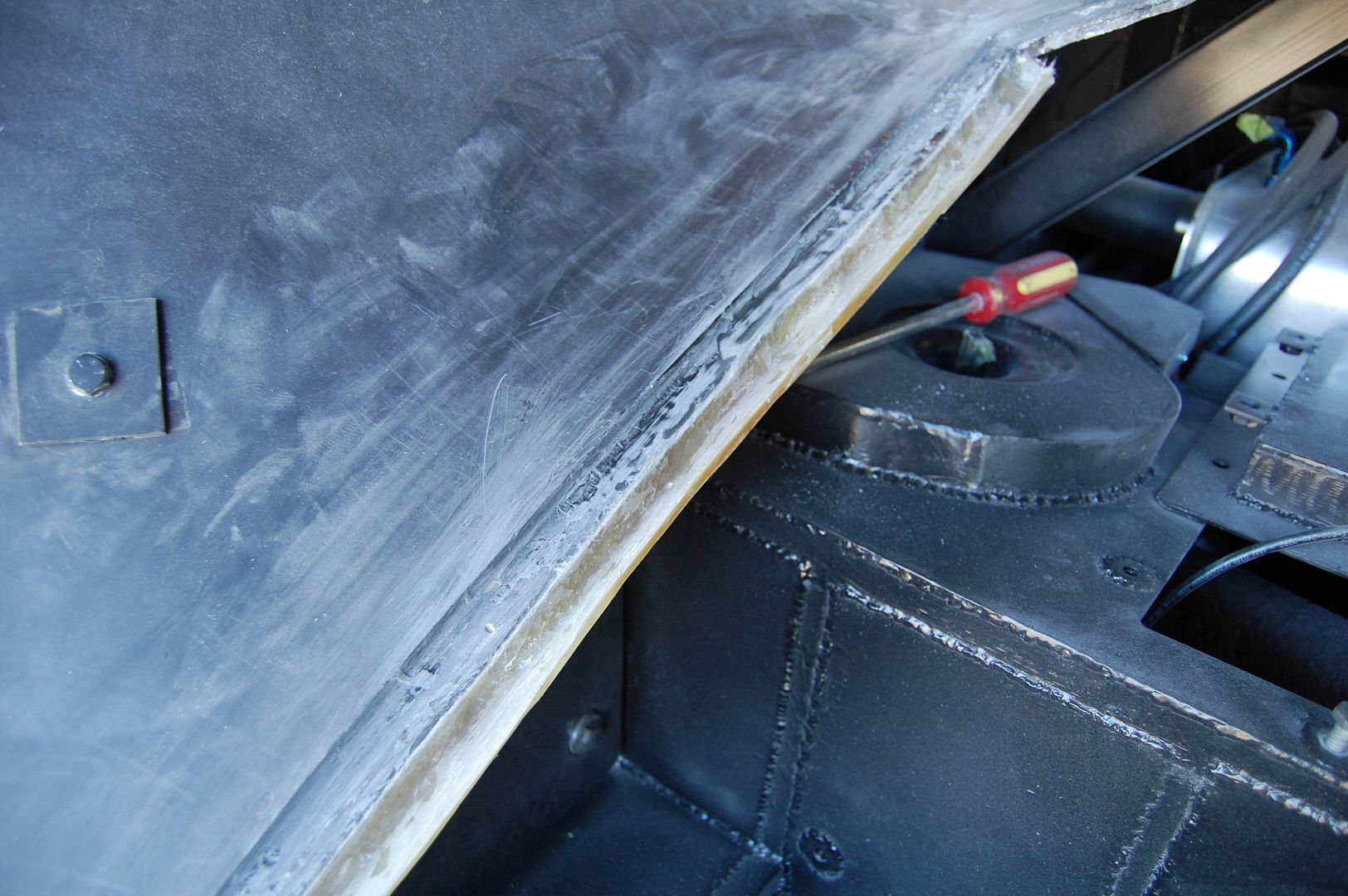 In some cases I clamped a few brackets to the body shell so that the edges of the trough wouldn’t fall out of shape under the weight of the fiberglass.