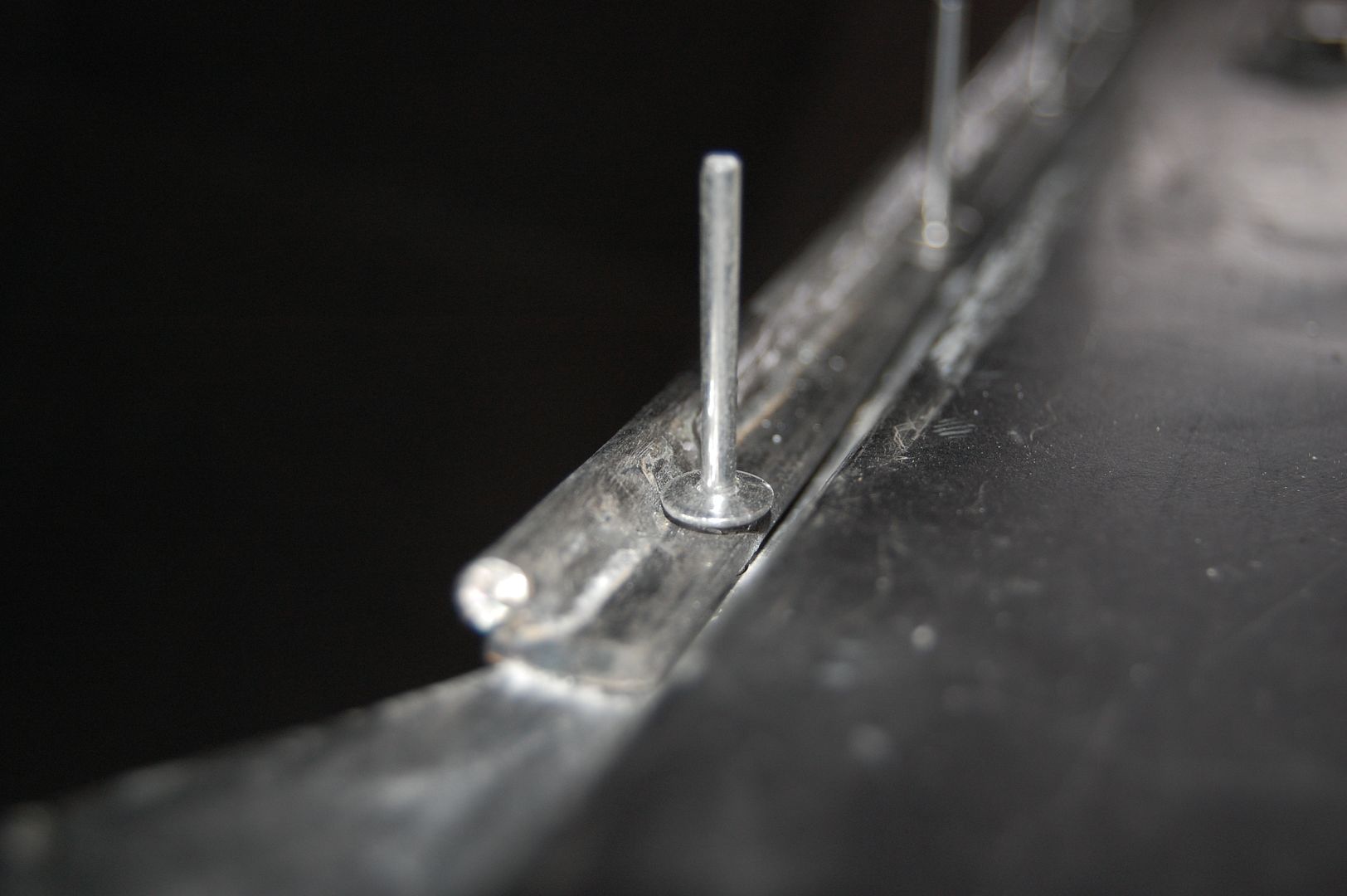These were then inserted into some holes that I drilled into the low spots of the channel that surrounds the canopy. They were then test fitted and drilled for two pop rivets.