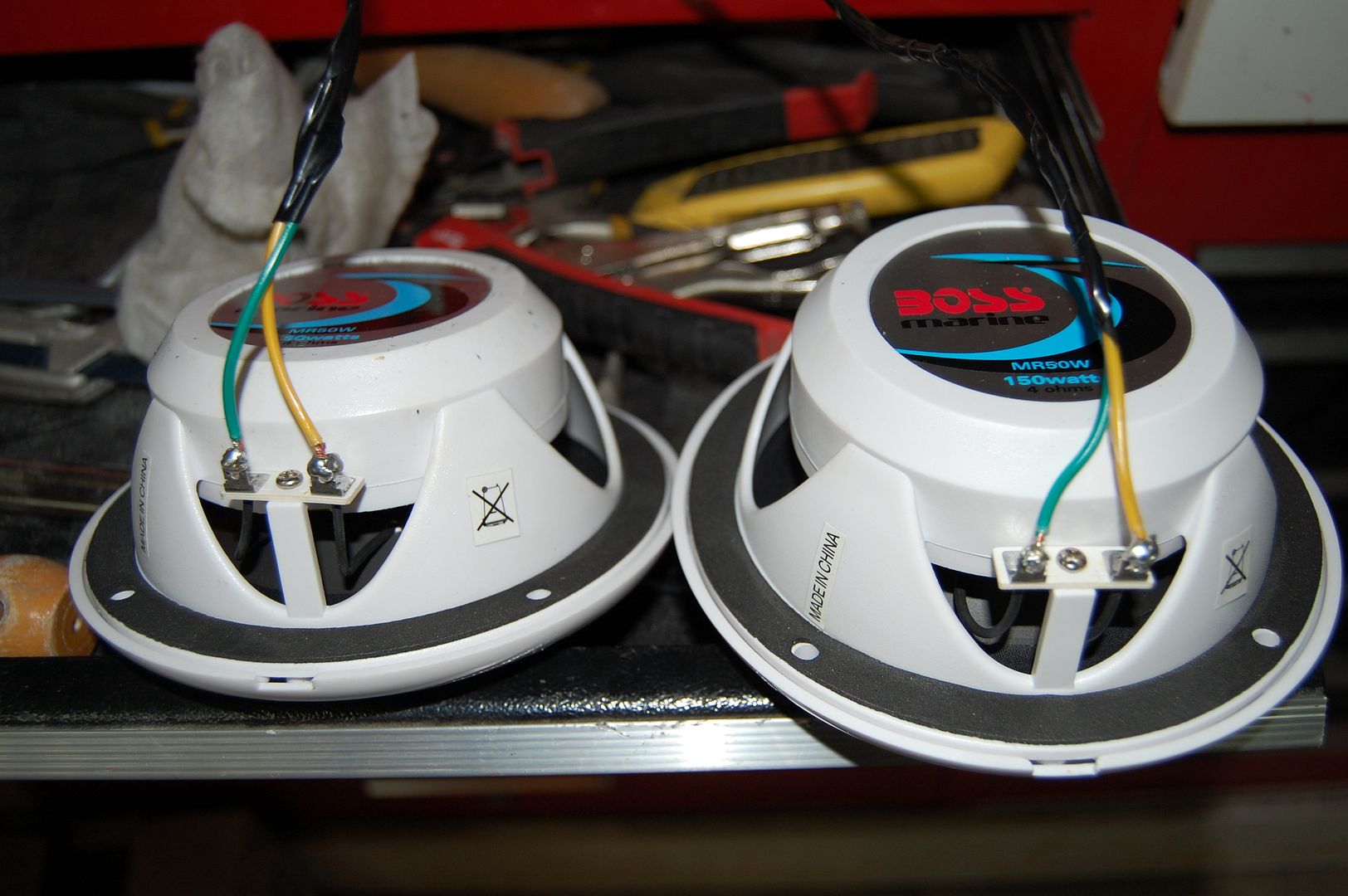 To complete the rear assembly I had a few tasks to tackle. One was getting the afterburner exterior speakers installed and sealed into their housings. These two speakers provide extra “umph” to the afterburner sound effects to go along with the third speaker that’s in the afterburner itself. Since they are pointing outward on the bottom of the car they need to be resistant to water, so I used some Marine speakers commonly used for boats.